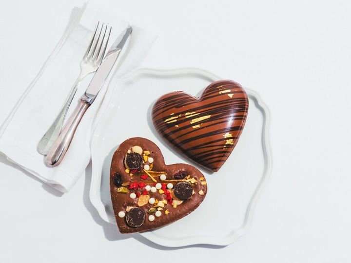 ゴールドをあしらったハート形のマンディアン。ナッツやドライフルーツがちりばめてあり、ひと口ごとに味わいや食感が違うのが楽しい。ふんわり軽やかな食感のチョコレートは口に入れるととろけるようになめらか。「大きめサイズなので、大切な方やご家族、ご友人と一緒にお楽しみください」(エグゼクティブペストリーシェフ・パスカル・シャルデラさん)。~3月14日の限定販売。東京都千代田区有楽町1‐8‐1‐B1 ザ・ペニンシュラ ブティック&カフェ TEL:03・6270・2888