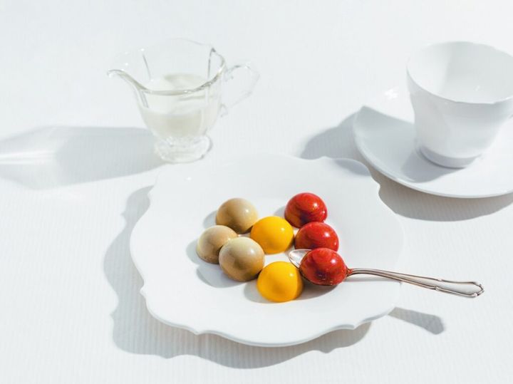 キュートな形と鮮やかな色が印象的なチョコレートボンボンは、“花”をテーマにしたもの。キンモクセイ、ヒマワリ、バラの3種類の花に、それぞれ柚子、赤味噌、塩キャラメルを合わせたフレーバーが、バレンタインをロマンティックに彩ってくれる。「大切な方に、花束と一緒に贈るのもおすすめです」(エグゼクティブ ペストリーシェフ・ジュリアン ペリネさん)。2月1日~3月15日の限定販売。東京都新宿区西新宿3‐7‐1‐2‐2F ペストリー ブティック TEL:03・5323・3462