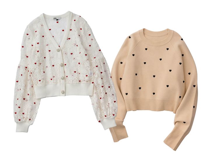 洋服もハートモチーフが気になる♡大人でも攻略しやすい【ハートドット】カーデ&スウェットをピック