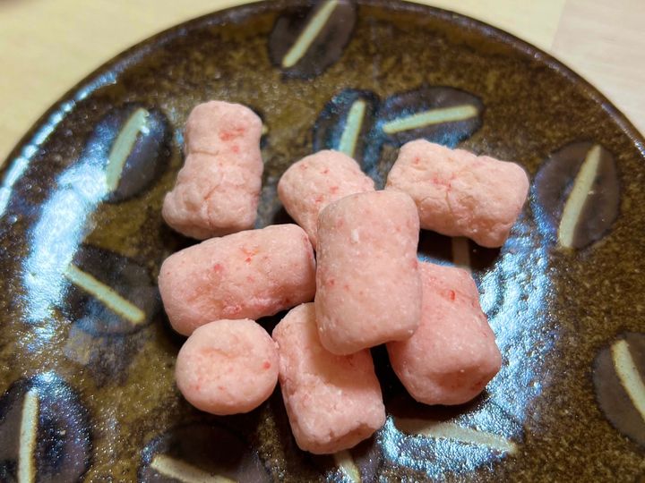 カリカリのいちごキャンディの食感が楽しいお菓子。