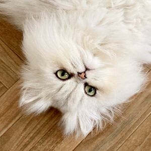 保護されて、1年前に飼い主の元へやってきたペルシャ猫の女の子。抱っこはあんまり好きじゃないけれど、ストーカーはやめられないツンデレガールで、くるくる変わるグリーンの目がチャームポイントです。本誌2023年6月号にて、わたなべとしふみさんによるジジの紹介イラストを掲載しています。