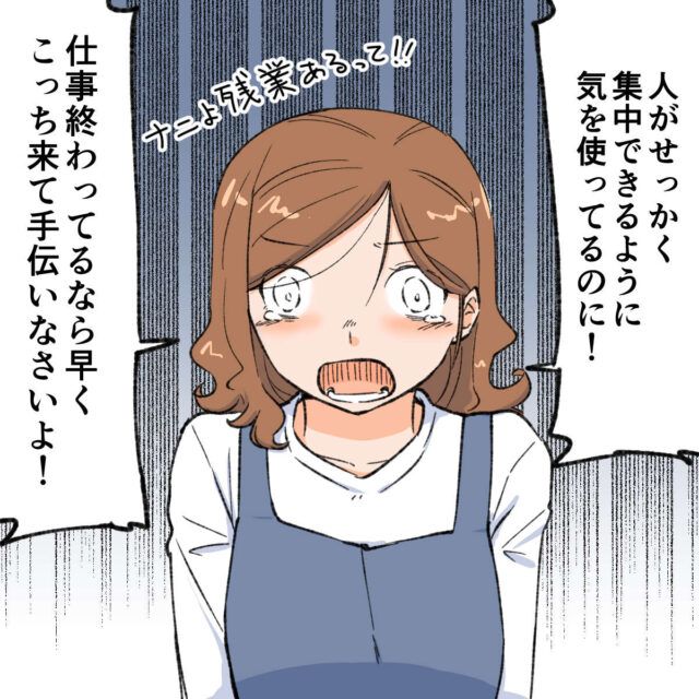 「人がせっかく集中できるように気をつかってるのに!何よ残業あるって!!仕事終わってるなら、早くこっち来て手伝いなさいよ!」