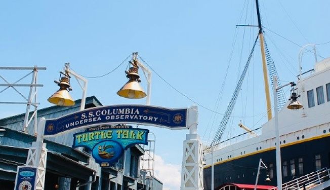 トイ・ストーリー・マニア!は休止中だったため、アメリカンウォーターフロントでは、ゲストの列はタワー・オブ・テラーに集中していました。なので、珍しく朝イチからタートル・トークに行くことに。子どもたちは「クラッシュとお話ししたい!」とウキウキしながら並んでいました。