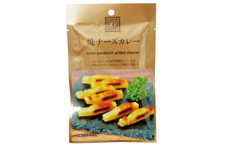 エム・トゥ・エム社のカレールゥをペーストにし、チーズでサンドしてオーブンで焼き上げた進化版チータラ。焼チーズカレー¥419