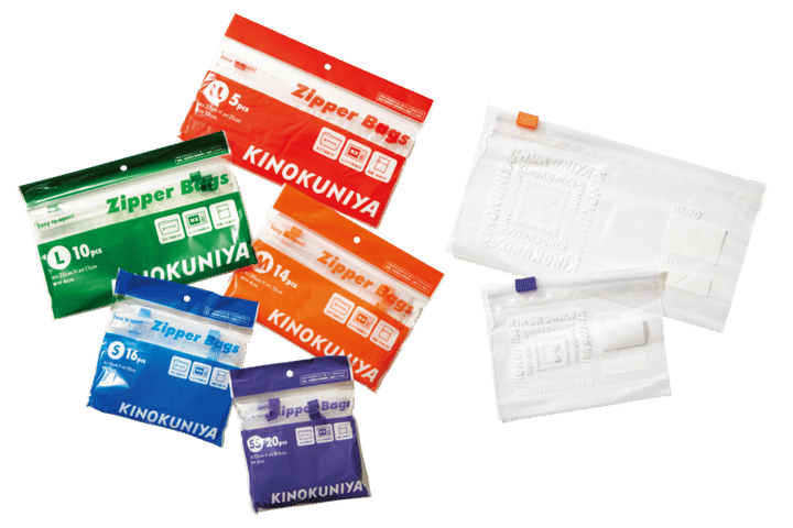 スライドジッパーなので開け閉めが簡単。スライドジッパーバッグ〈SS/S/M/L/LL〉各¥250