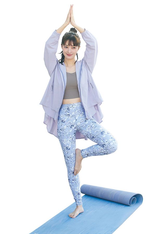 パーカ¥24,200/ダンスキン(ゴールドウイン カスタマーサービス) トップス¥10,450、レギンス¥14,300、ヨガマット¥13,200/以上ジュリエ ヨガ アンド リラックス