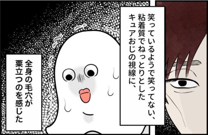 ですが、キュアおじの目は全然笑っていません。逃げられない今、次は何をしてくるのか、緊張の時間が続きます。