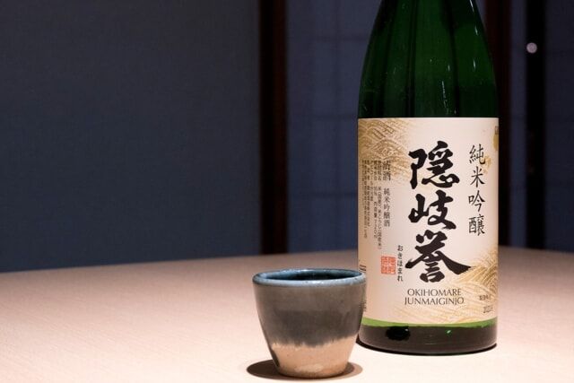 「蟹の奉書蒸し」には、島根県沖50キロに浮かぶ隠岐の島の蔵、隠岐酒造の「隠岐誉 純米吟醸」をペアリング。蒸し蟹の繊細な美味しさを邪魔しない淡い旨みと、キレのある酸味が料理に弾みをつけるお酒です。