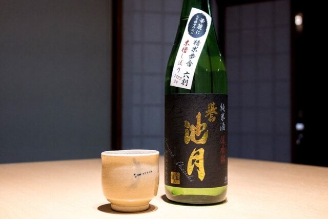 ▲お鍋には池月酒造「誉 池月 純米 佐香錦 60 黒ラベル」