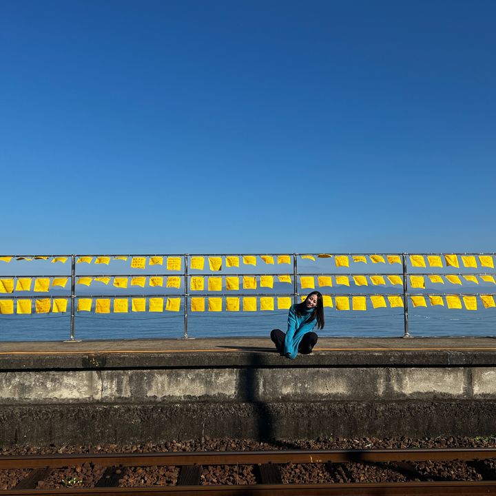 この大三東駅には黄色いハンカチがたくさん飾られています!
