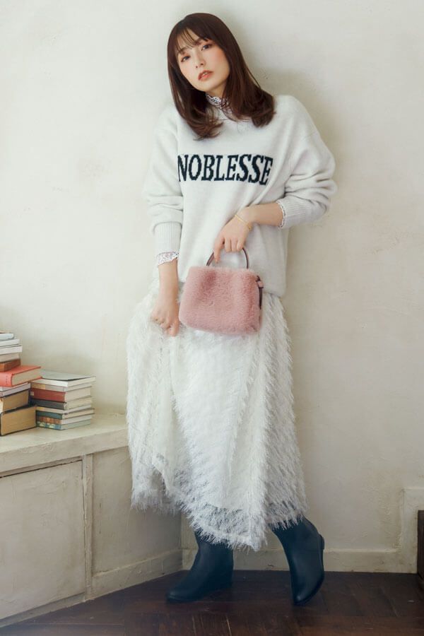 ブーツ¥46,200/銀座かねまつ(銀座かねまつ6丁目本店) ニット¥15,400/アプワイザー・リッシェ トップス¥9,680/SNIDEL スカート¥14,960/Swingle(Swingle 有楽町マルイ店) ブレスレット¥6,600/エネーダフランカ(ココシュニック 新宿タカシマヤ店) バッグ¥56,100/ケイト・スペード ニューヨーク(ケイト・スペード カスタマーサービス)