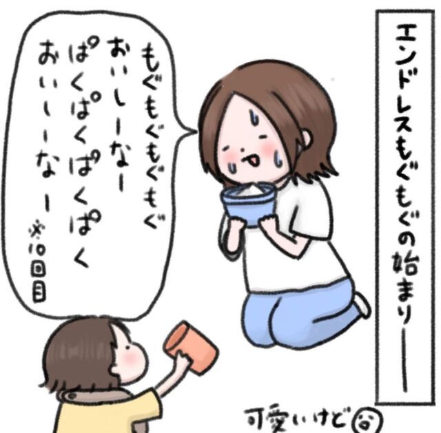 いや可愛いけども!2歳息子の歓喜の顔にほだされて延々に繰り返されるもぐもぐタイム|ねむりひつじの子育て絵日記