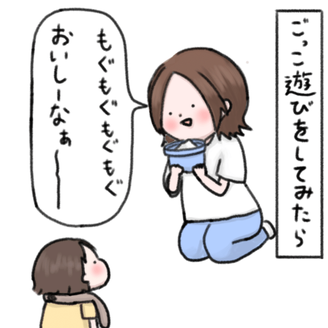 3. いや可愛いけども!2歳息子の歓喜の顔にほだされて延々に繰り返されるもぐもぐタイム|ねむりひつじの子育て絵日記