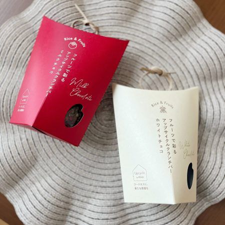 実店舗で購入できる商品は、「フルーツで彩る アップサイクルクランチバー(ミルクチョコ)」「フルーツで彩る アップサイクルクランチバー(ホワイトチョコ)」の2種類です。 (各1058円)