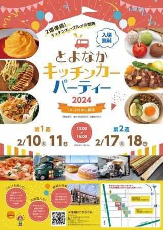 2月10日(土)・11日(日)・17日(土)・18日(日)午前10時~午後4時、ふれあい緑地(豊中市服部西町5丁目敷地内ほか)で「とよなかキッチンカーパーティー2024inふれあい緑地」が開催されます。