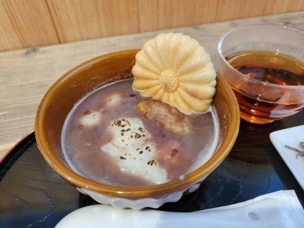 おしるこセット 600円 自家製のおしるこです。おしるこの種類は、粒あん・こしあん・抹茶あんの中から選べますが、粒あんにしました。おしるこは冒険できなかったるなるなです。セットには、ミニムレスナティーと塩昆布が付いています。ムレスナティーって、最高級の紅茶じゃん!お得感がありますね。面白いですね。おしること紅茶の組み合わせ。さすが、和スイーツ!
