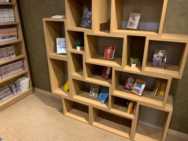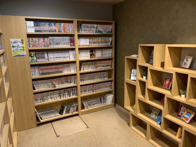 また、ドーミーイン名物の漫画コーナーもあります。『鬼滅の刃』『チェンソーマン』などジャンプの人気作から、『深夜食堂』『孤独のグルメ』などのちょっと渋いセレクションまでありました。すべての漫画はホテルのスタッフの方がセレクトしていて、最新刊の発売日にはわざわざ買いに走ることもあるそうです。