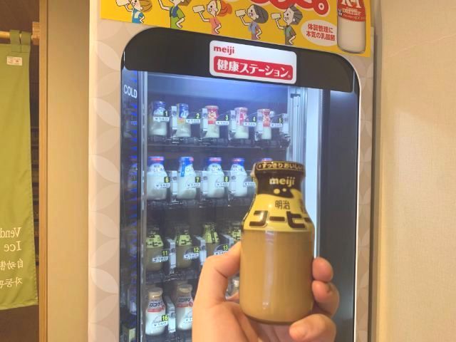 自動販売機のコーナーもありました。アルコールやソフトドリンクだけでなく、風呂上りに飲みたい牛乳やフルーツ牛乳など乳製品をそろえた自動販売機も。冷たいコーヒー牛乳は腰に手を当ててゴクゴクッっといきたいですね。