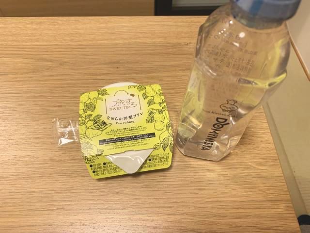 冷蔵庫にはウェルカムスイーツのサービスも。宿泊時によってメニューは変わるそうですが、この日は洋梨プリンでした。これがしっとりとした舌触りかつ、濃厚な味わいで、めちゃくちゃおいしかったです。