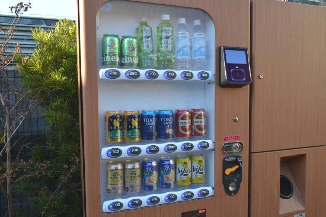 屋上には椅子やテーブルがそろったスカイテラスがあり、銀座の空を一望。自動販売機にはクラフトビールやハイネケン、サワーなどが豊富にそろっています。