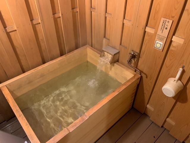 なんと、檜の半露天風呂もついていました! 吹き抜けの天井で開放感もあり、ひんやりとした空気を感じつつ、檜風呂を堪能させてもらいました。今回は早朝に利用しましたが、夜は星空を眺めながら……なんていうのもオツですね。
