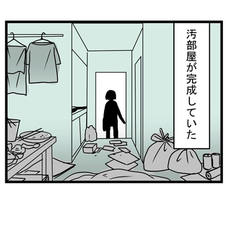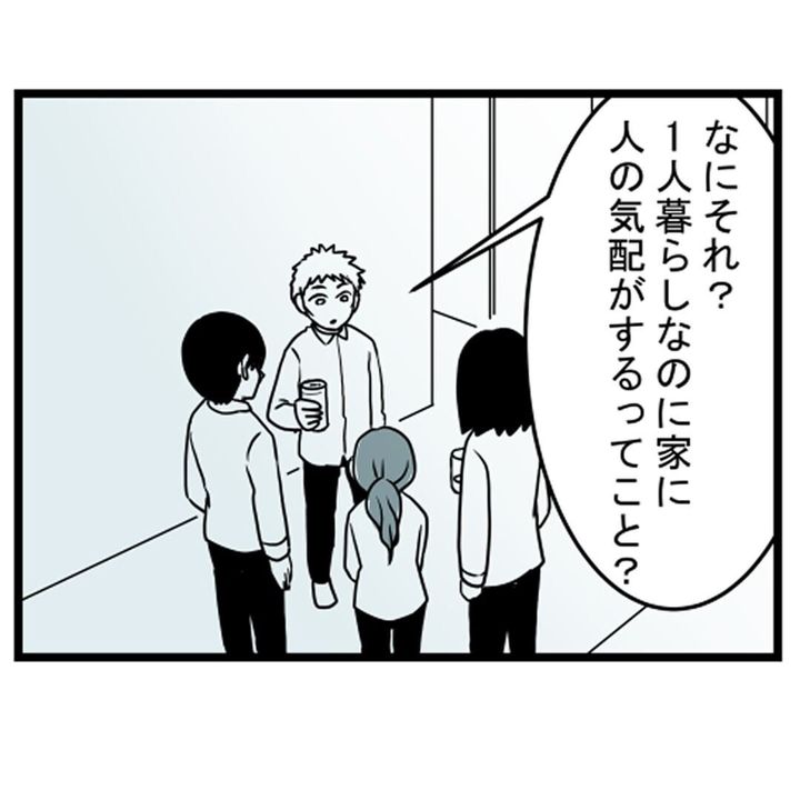 ブラックな職場で働いていたモンズさん。家に帰るのがやっと、という多忙な日々で、いつの間にか自宅は汚部屋に。そんな中、帰宅すると玄関の鍵が空いていたり、物の置き場所に違和感を感じたり、誰もいないはずなのに人の気配を感じたり、不思議な出来事が続いて…。