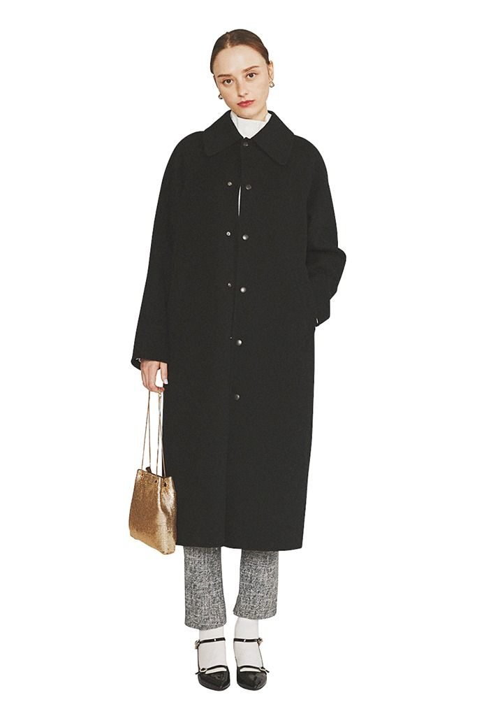 グレージャカードレギンス 20,900円/ダブルスタンダードクロージング(フィルム) コート 115,500円/THE SHINZONE(Shinzone ルミネ新宿店) 中に着たシャツ 26,400円/エトレトウキョウ ピアス 15,400円/ニナ・エ・ジュール(ショールーム ロイト) ソックス 1,100円/タビオ バッグ 7,700円/COO(ROSE BUD ルミネエスト新宿店) パンプス 18,700円/ダイアナ(ダイアナ 銀座本店)