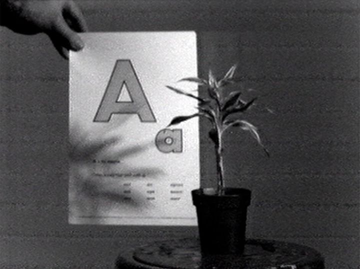 ジョン・バルデッサリ《植物にアルファベットを教える》1972 年/18 分 40 秒 John BALDESSARI, Teaching a Plant the Alphabet, 1972. Courtesy Electronic Arts Intermix (EAI), New York.