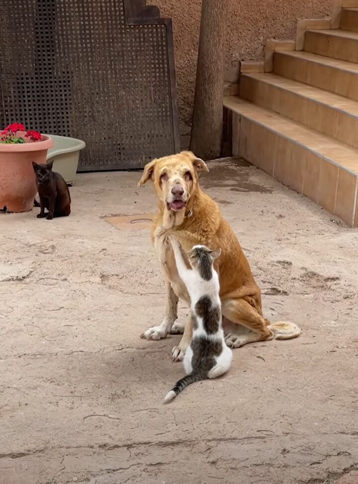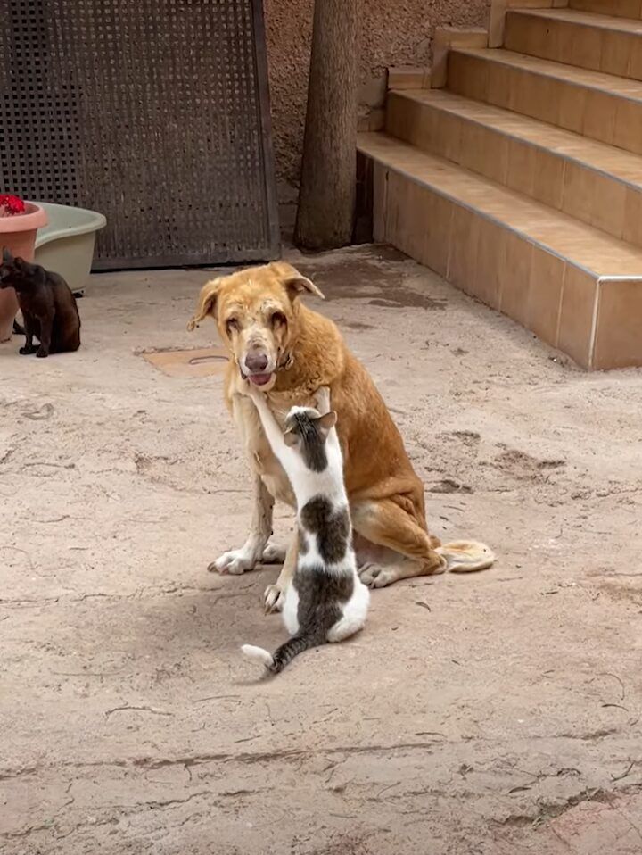 仲の良さがうかがえる。目の見えない犬を猫がもみもみマッサージ!
