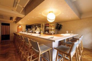 カジュアルなバルからモダンスパニッシュの名店まで、幅広いジャンルのスペイン料理店で腕を磨いた坂田慎吾さんが、2023年10月に満を持してオープン。これまでの経験を存分に生かした料理を全8品のおまかせコースで楽しむことができます。オーセンティックなメニューをベースに、ご自身が生まれ育った熊本の食材を取り入れるなどオリジナリティある一皿に仕上げているのが魅力です。オープンキッチンを囲むカウンターは、一部分が4人掛けのテーブルとしても利用できるので、大人の女子会スポットとしても早くも注目を集めています。