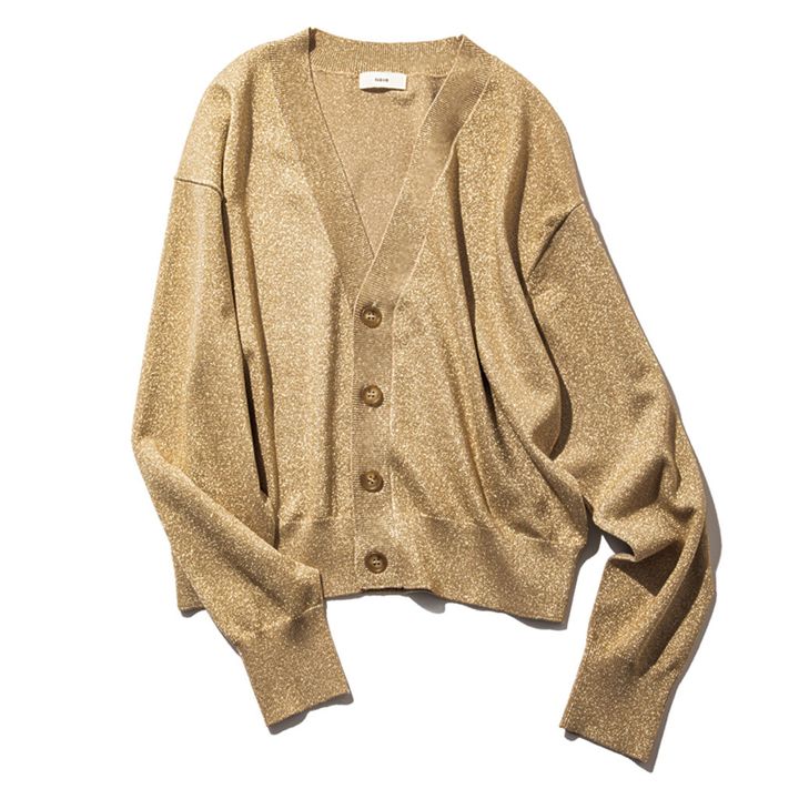 最旬トレンドのラメミックスニットは、ゴールドベージュを選べば大人もきちんと着られます。¥19,910(ネイヴ/オンワード樫山)