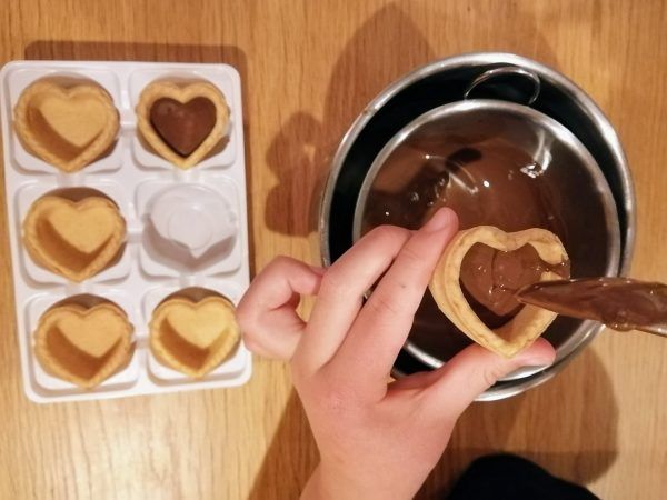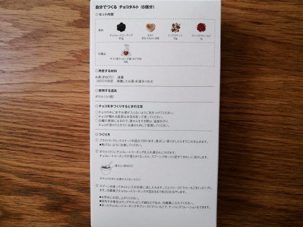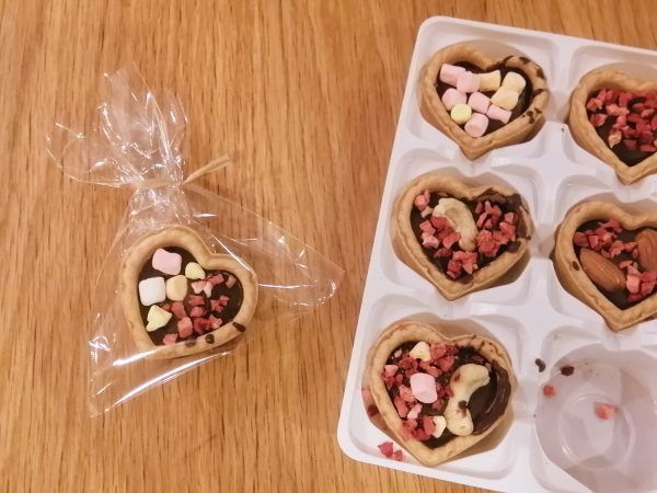 タルトって作るのが難しそう...と思っていたのですが、こちらのキットは溶かしたチョコレートをハート形のタルトに流し込んで冷やして固めるだけなので、とても簡単♪