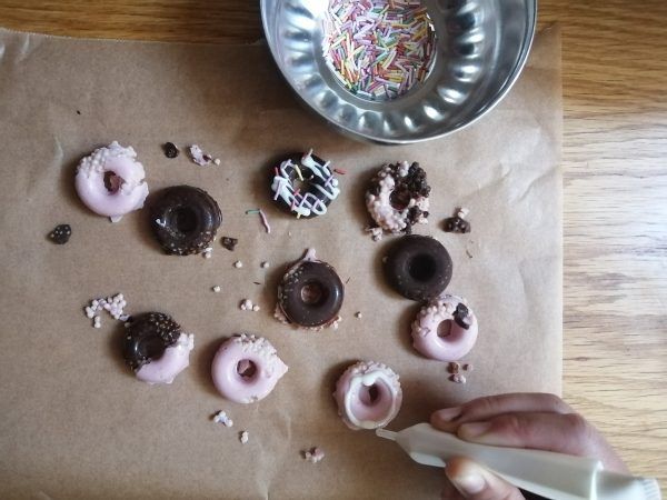こちらのキットも用意するのは、お湯とボウルだけ。ドーナツの型やペンチョコを見て「トッピングをするのが楽しみ!」と、わくわくしている娘。