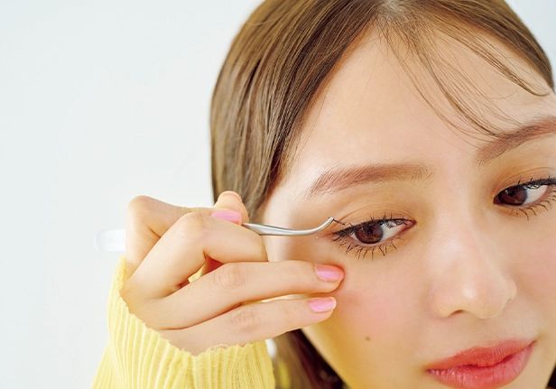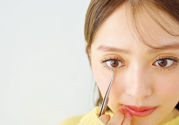 難しいワザは不要なので、ぜひトライを!手持ちのマスカラとピンセットを用意して、まつ毛が少なめの人は部分用つけまも活用して。