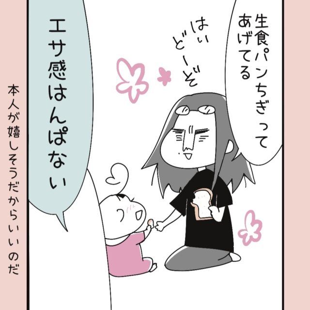 エサ感・・(汗)。驚きの生食パンランチ、めんこちゃんがうれしそうに食べてくれるのが・・一番ですよねー!