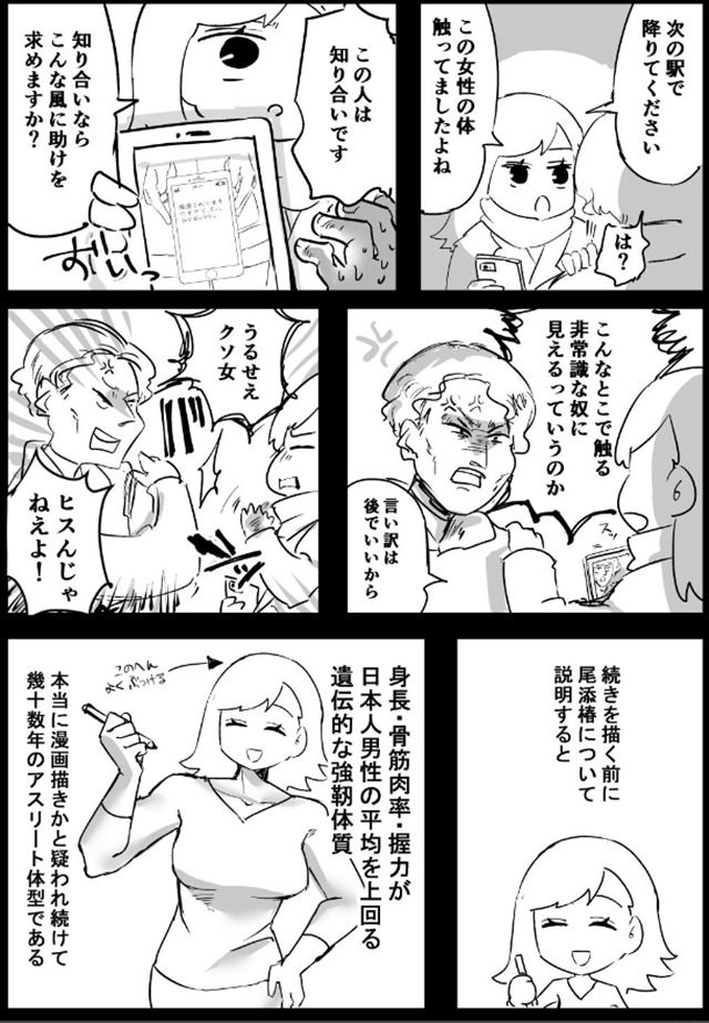 痴漢に遭遇した際に重要なこととは?強すぎるマンガ家が描いた痴漢注意喚起の漫画が参考になるけど真似はできないな。。。