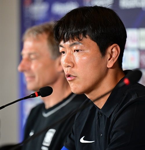 (写真提供=OSEN)記者会見に臨んだクリンスマン監督とキム・ヨングォン
