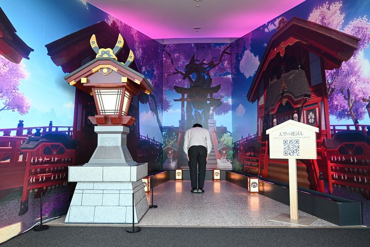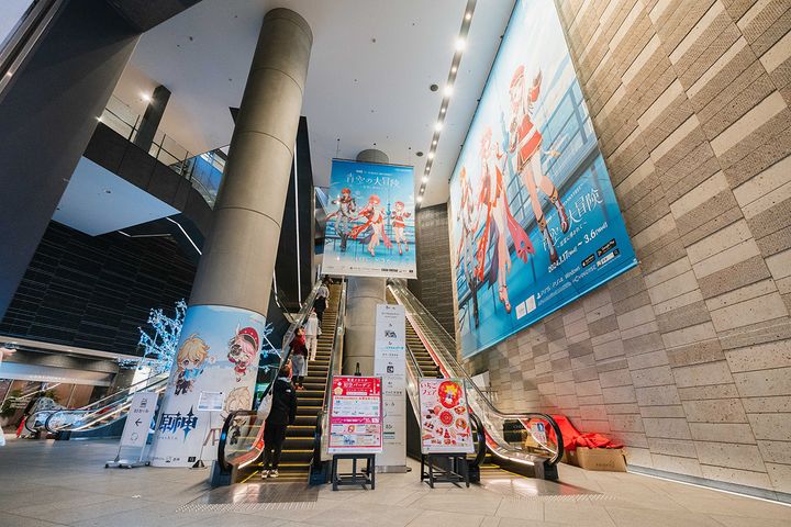 エレベーターがフロア445のウェルカムエリアに到着すると、今回のメインビジュアルを飾る3人、タルタリヤ、八重神子(やえみこ)、シャルロットのパネル展示が!まるで三人から歓迎の声が聞こえてくるかのようです。