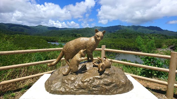 西表島といえばイリオモテヤマネコを思い浮かべる人も多いでしょう。広場の銅像から橋の欄干、公園のすべり台、塀に置かれたシーサーもどきまで、とにかく島はイリオモテヤマネコ一色。ぜひ宝探し的なノリで目を光らせてみてください。