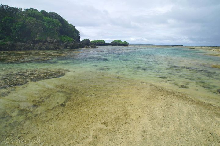 星砂の浜は浅瀬で波が比較的穏やか、水温は高めで、潮だまりや海底の岩陰にカラフルな熱帯魚が多数見られることから、海水浴やシュノーケリングポイントとしても人気の高いスポットです。