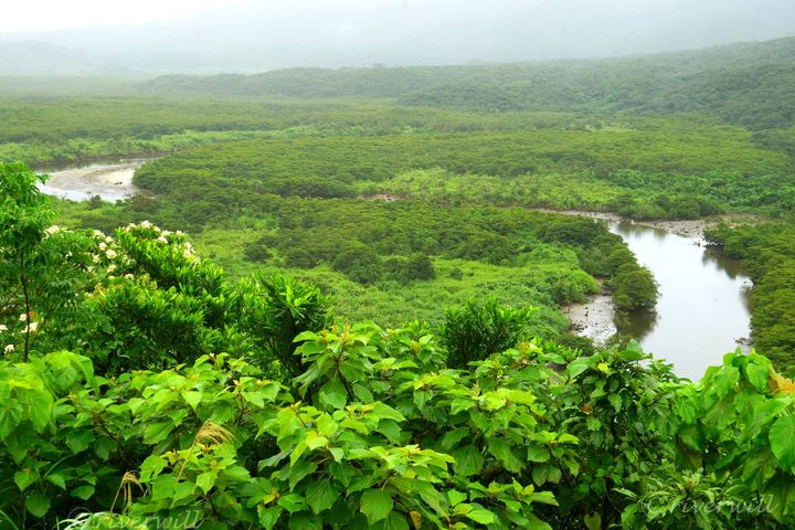 写真は仲間川展望所から眺めたジャングルの様子。ここから仲間川マングローブクルーズやカヌーなどのアクティビティを遠望することもできます。