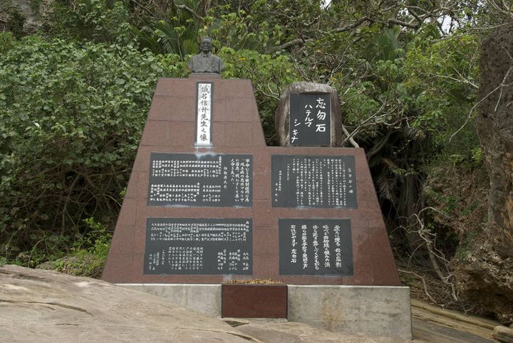 第2次大戦の戦況悪化で、軍の司令によりこの地へ強制疎開させられた波照間島の島民たち。マラリアに汚染されたこの地ではそのほとんどが罹患し、約3分の1が命を落としたとされています。「忘勿石」は、当時の波照間国民学校(現:竹富町立波照間小学校)の校長を務めた識名(しきな)氏が生存者とともに波照間島へ引き揚げる際、犠牲者を悼んで刻んだ「忘勿石 ハテルマ シキナ」に由来します。
