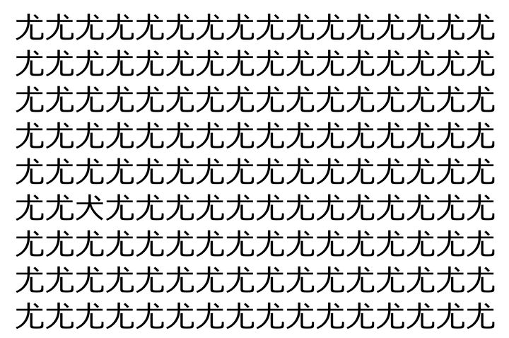2. 【脳トレ】「尤」の中に紛れて1つ違う文字がある!?あなたは何秒で探し出せるかな??【違う文字を探せ!】