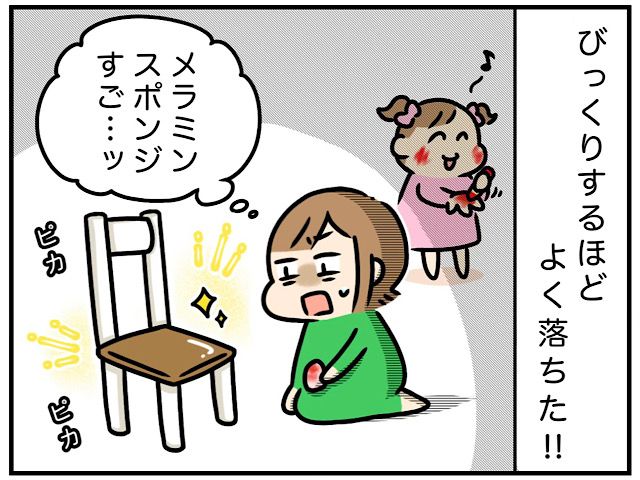 3. 「ぜったい買う」メラミンスポンジ神!クレヨンで椅子に落書きされてももう大丈夫|なでこの育児漫画