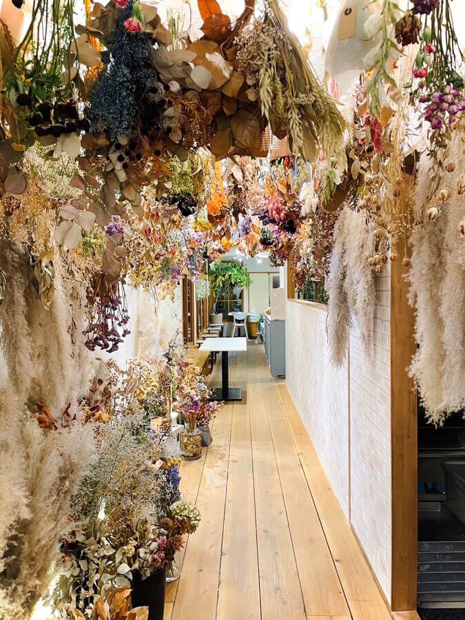 ここは京都の東福寺駅近くにある『ぱんなり!』というお店です。主に玄米をブレンドした「健幸食パン」と、その食パンを使ったサンドウィッチなどが販売されています。店の奥へ進んでいくとたくさんのドライフラワーに囲まれて、とても良い香りがしてきます。