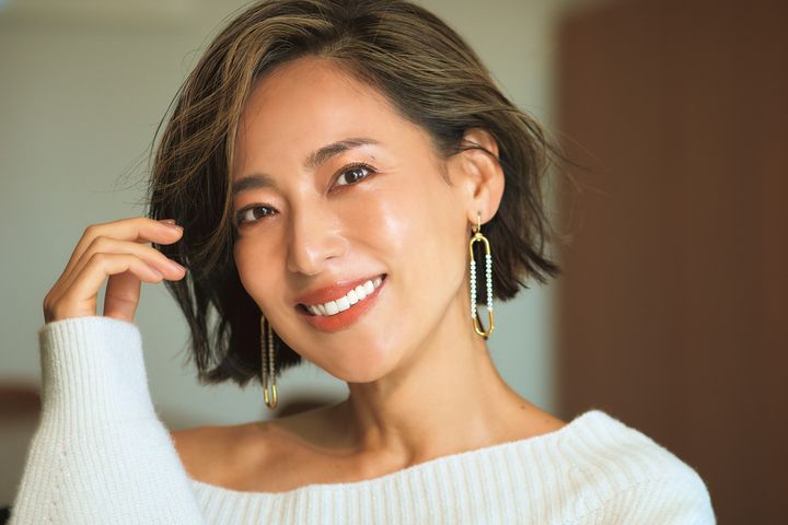 〈衣装クレジット〉ニット¥18,700(マイストラーダ)ピアス¥4,950 〈MEX〉リング[左手人さし指]¥2,200〈ヘンカ〉(ともにロードス)