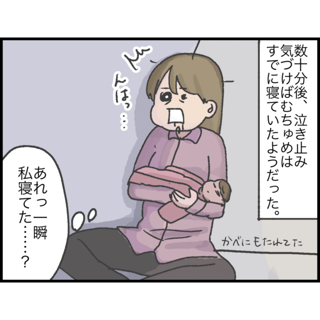 壁にもたれて寝てしまったしおさん、娘ちゃんは泣き止んですでに寝ていたようでした。