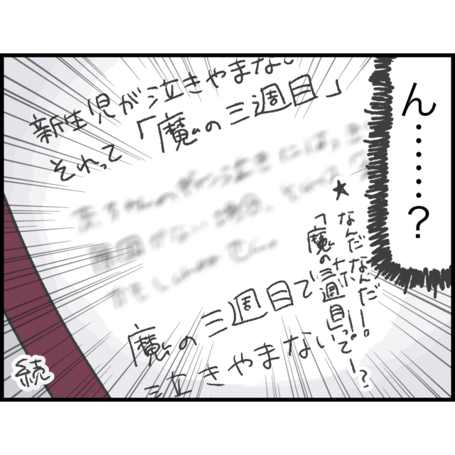 あぁ・・しおさんが感じた母親失格感、赤ちゃんの泣いてる姿に、「すべての責任は私にある」と、ついつい思ってしまいますよね・・。そして「魔の三週間目」って・・。