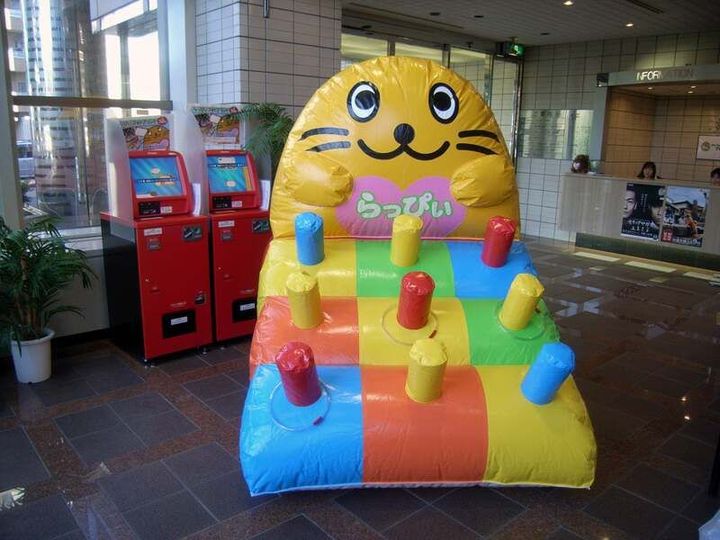 ふわふわのメガらっぴぃドームです。屋内遊具施設「ア・ソ・ボーヤ」にて設置。ふわふわ飛び回ろう!