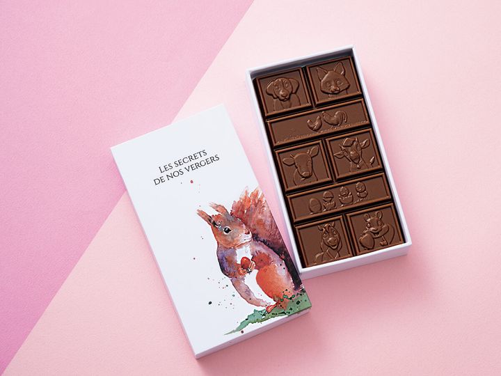 ミルクや卵などの素材にこだわり、シンプルなおいしさを追求するシェフ、マキシム・フレデリック氏による新作タブレット。動物が型押しされたチョコレートは、愛らしい見た目ながら本格的な味わい。